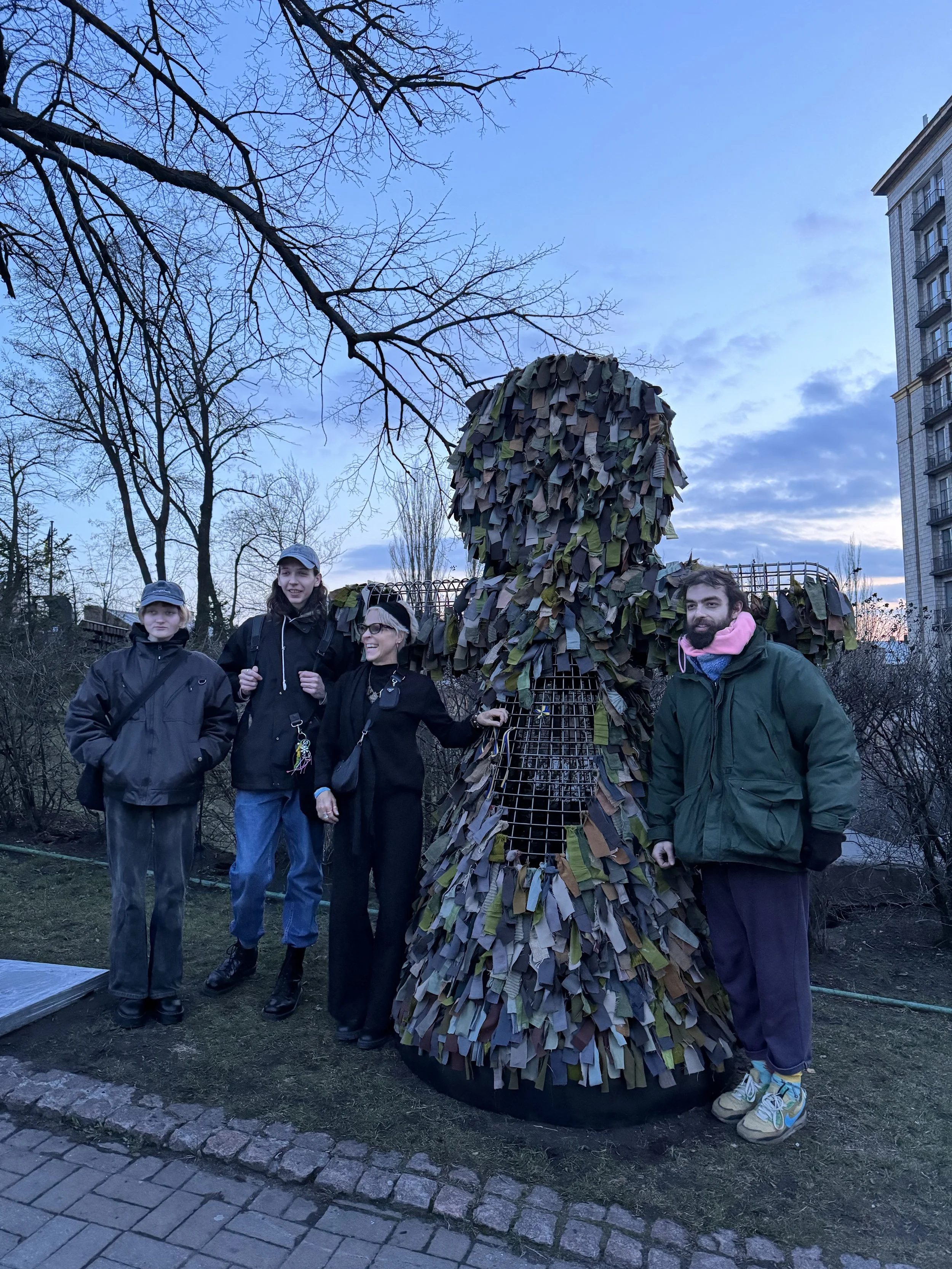 The memories and pain remain. This “Motanka” serves as a talisman to protect and heal Ukrainians. It is a place to gather strength from our ancestors. It serves as a reminder that Motanka dolls were simple in form, made from what was available in every house, in order to protect the children. This sculpture draws a parallel to the military nets that were made from everything available in order to defend the nation.